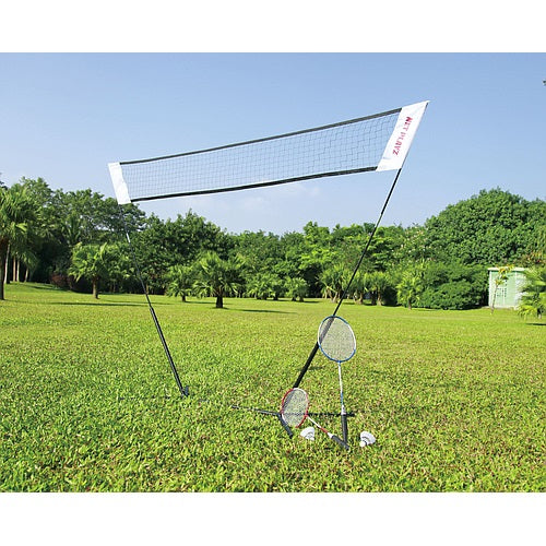 Freestanding Badminton Net with quick assembly construction.