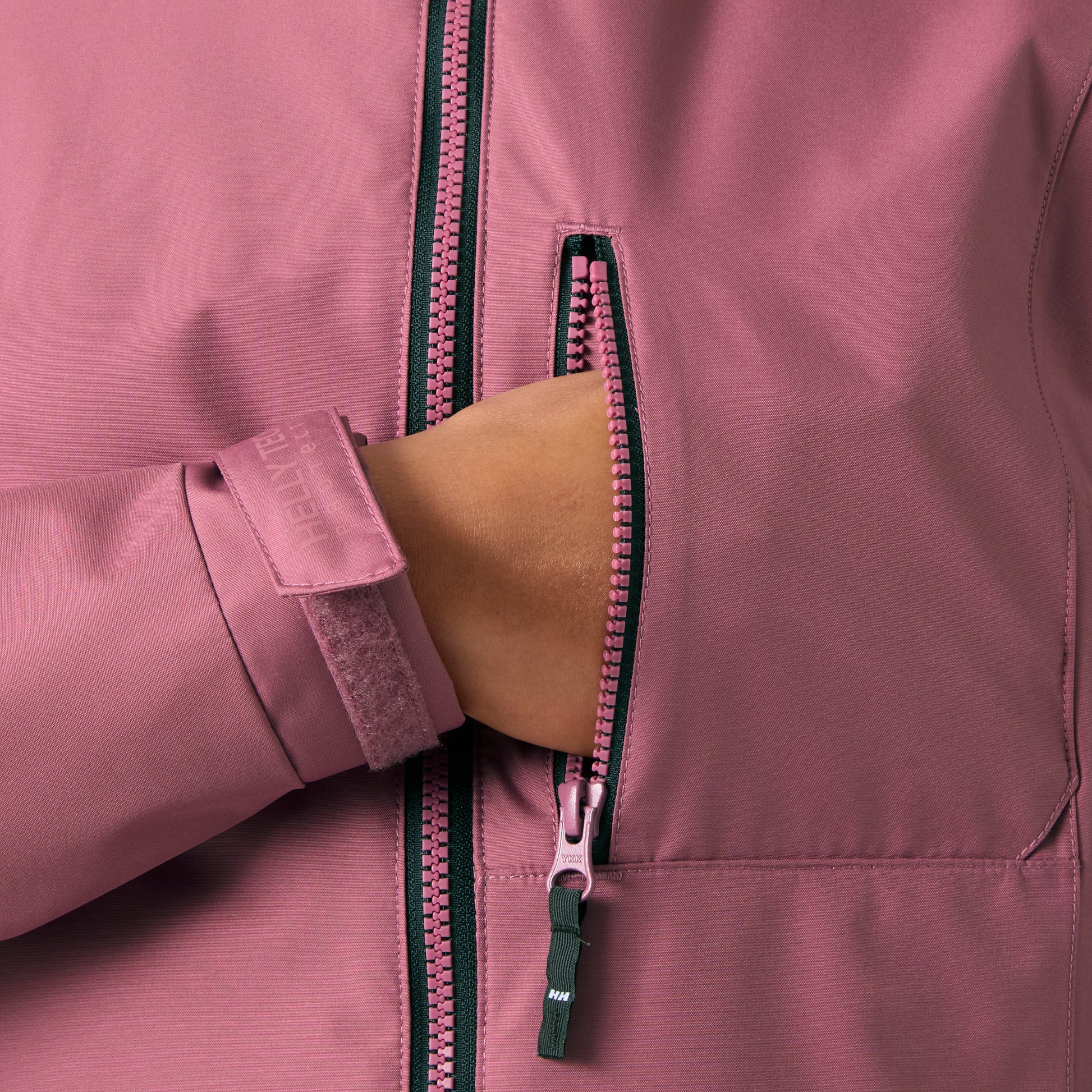 Hand pockets with secure zipper closure