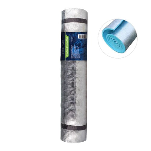 Full-length foam roll mat, foil-backed one side for additional warmth. Includes two elasticated straps for carriage.