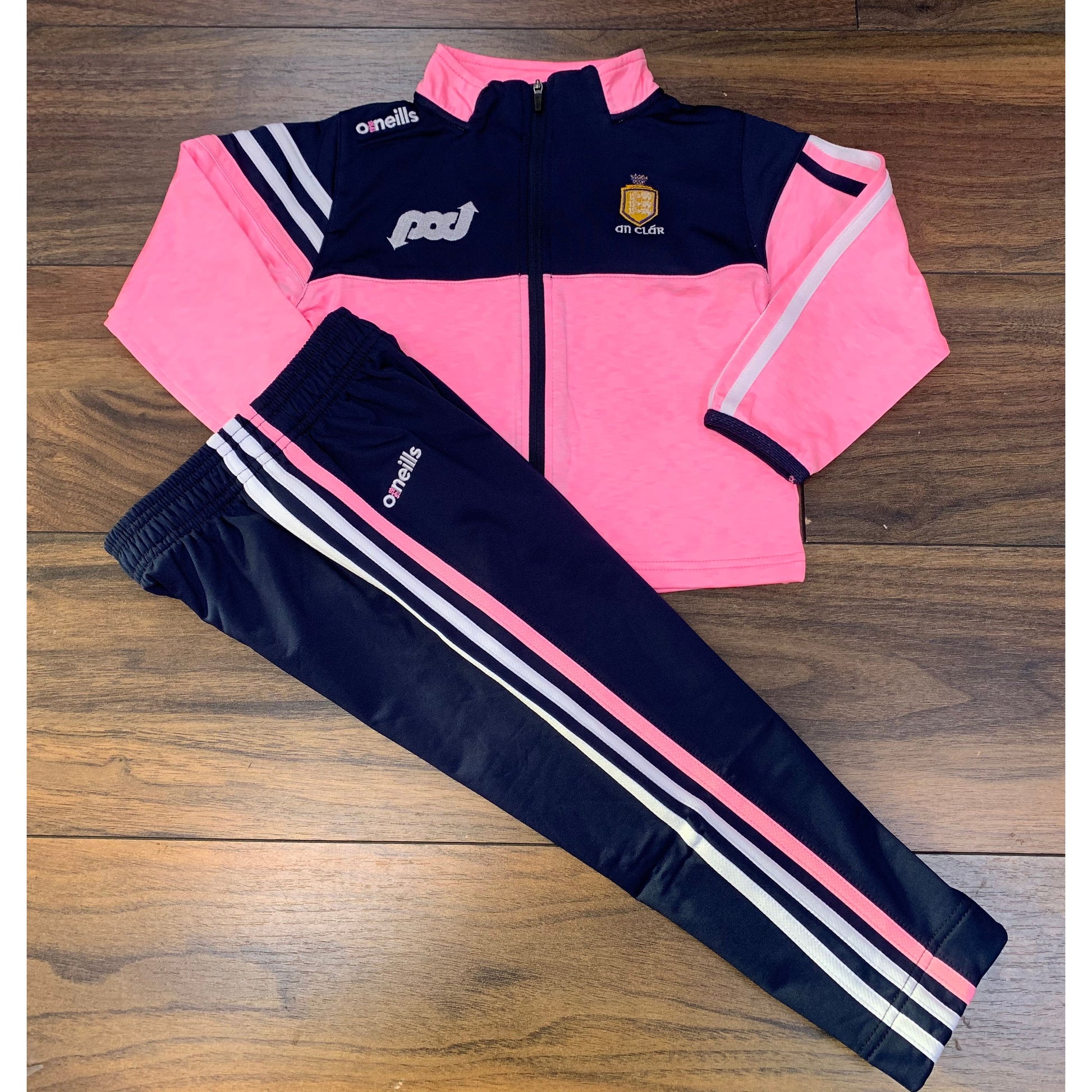 Clare Ladies Nevis GAA infant tracksuit consists of a full zip hoody and ribbed cuff pants.