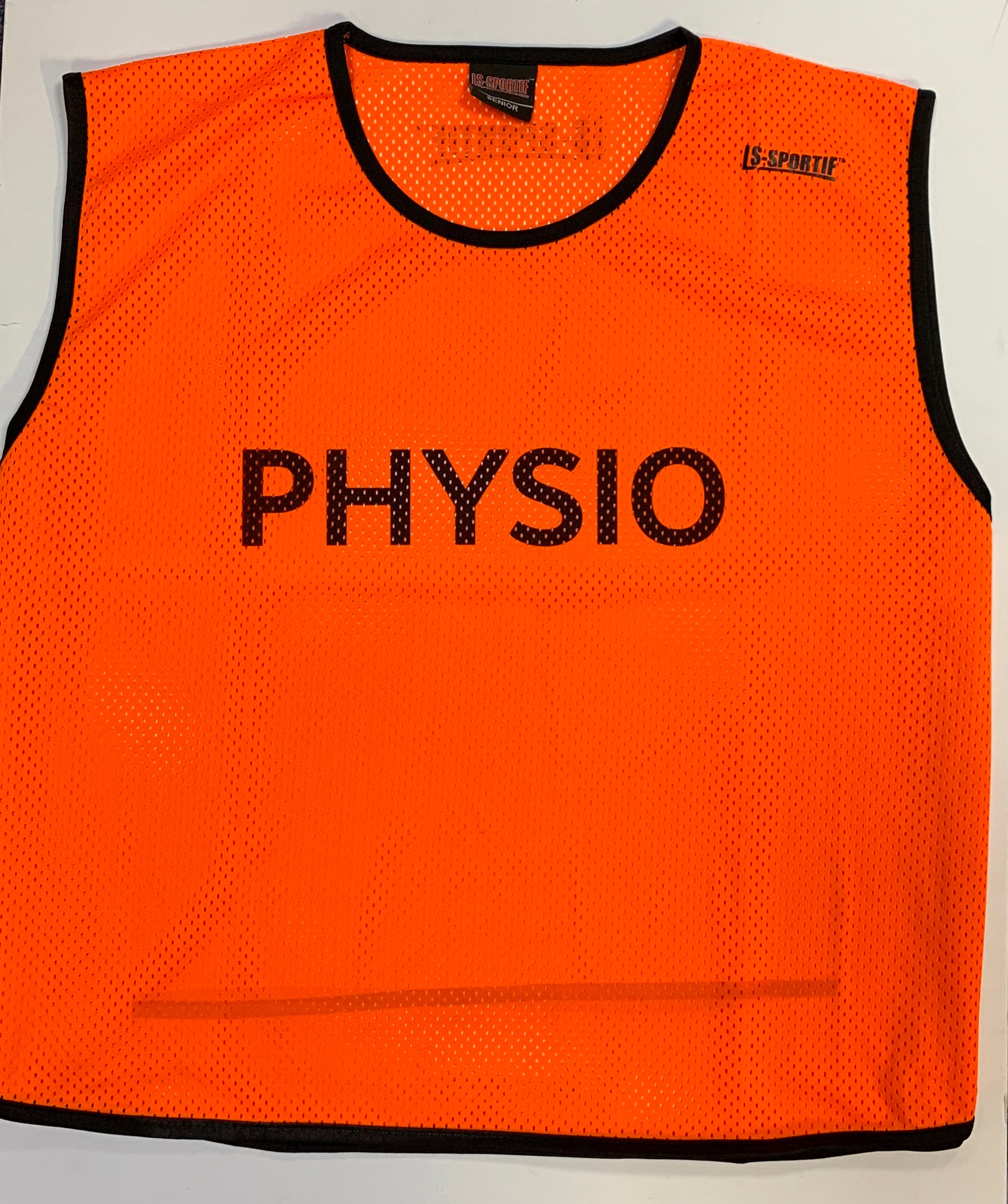 Top quality mesh training bib with contrast elasticated binding and LS Sportif logo on the shoulder and back.