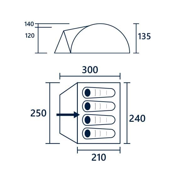 250cm x 300cm comfortable footprint