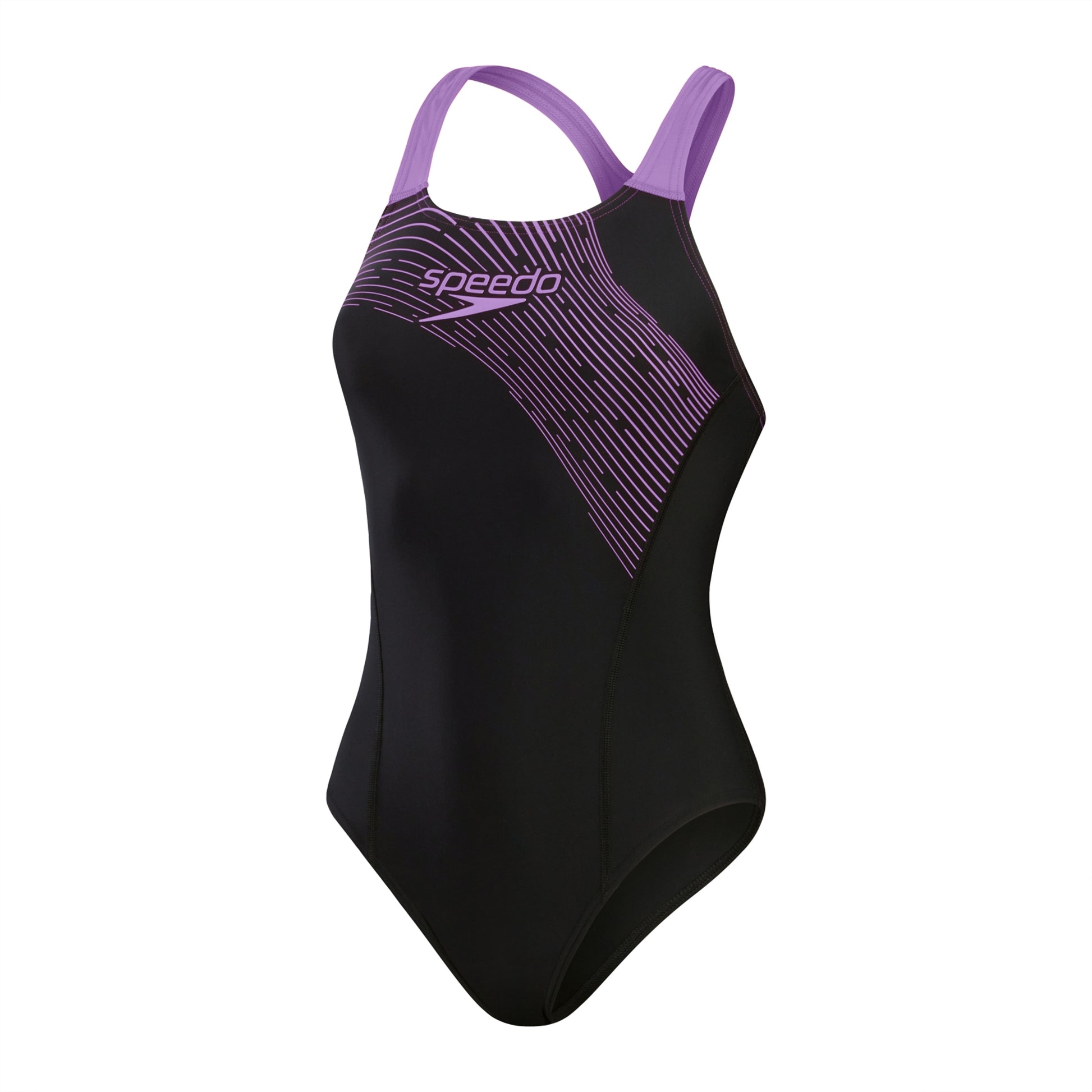 Speedo Classics – everything you need for a great swim. Cruise through training wearing our stylish black Medley Medalist swimsuit, featuring the latest evolution of our Medley logo graphic in a lilac plastisol print with matching colour-pop straps. The medalist design is a Speedo classic and aids shoulder movement and flexibility, so you’re comfortable during training. Ideal for regular pool sessions, our EnduraFlex fabric offers higher chlorine resistance than standard swimwear fabrics and fits like new for longer with CREORA® HighClo™. In addition, nylon yarns in the EnduraFlex fabric are made from 100% pre-consumer waste, such as waste fabric from factories.